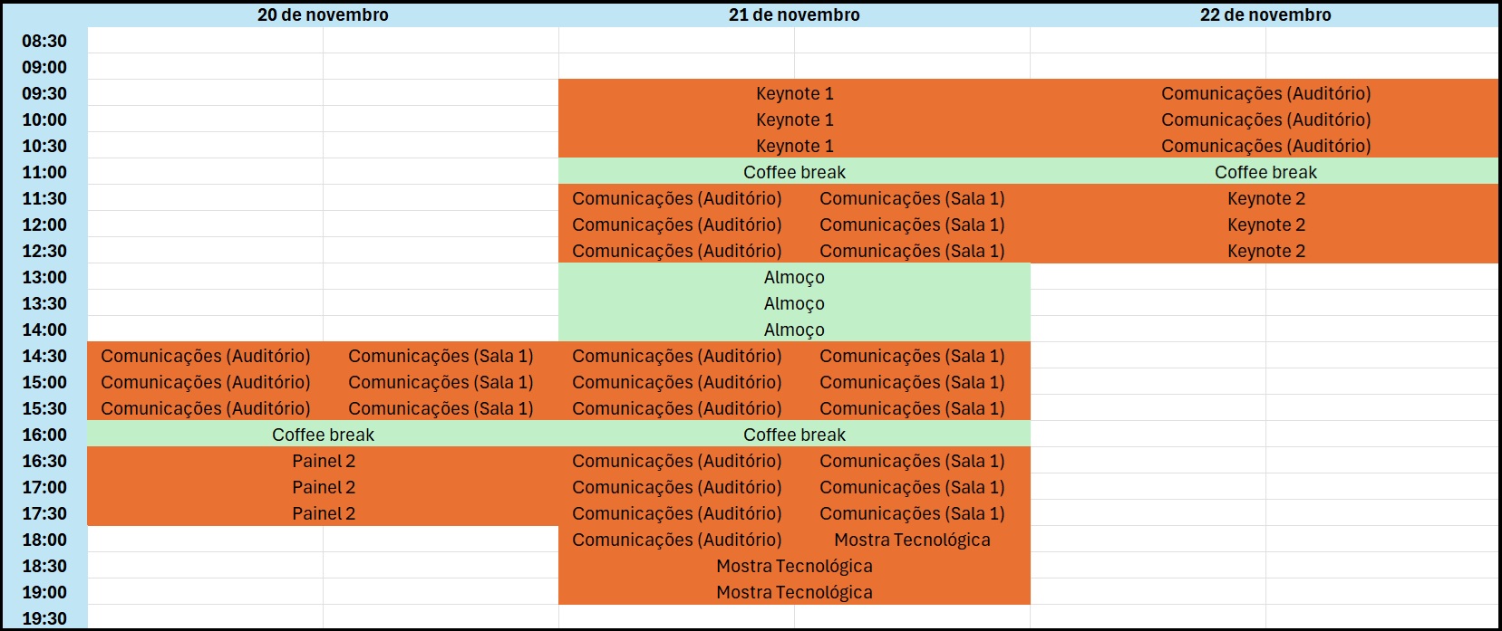 Para este curso de formação estão contempladas 13,5 horas, constantes no programa do Simpósio Internacional de Informática Educativa (SIIE). Haverá sessões paralelas (que decorrem em simultâneo) organizadas de acordo com os eixos temáticos. Cada participante pode escolher as sessões de acordo com o seu interesse pessoal pelas temáticas abordadas.